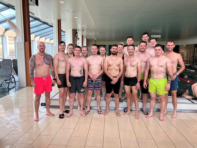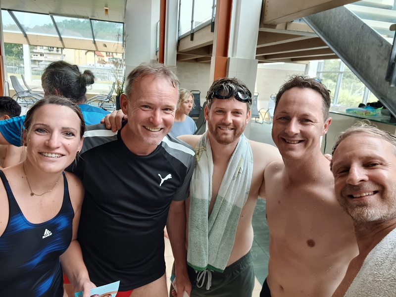 So waren die Sportwarte sichtlich motiviert und konnten in zwei Stunden abwechselnd insgesamt 292 Längen auf der 25-Meter-Schwimmbahn zurücklegen.