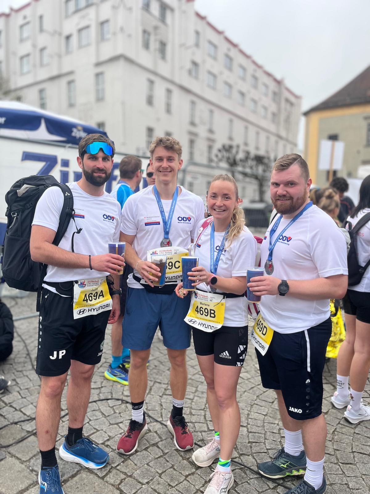 Als der Erste von vier Läufer:in ging Julius PENZENAUER ins Rennen, welcher eine Strecke von 10 km zu absolvieren hatte. Nach ca. 43 min erreichte er die erste Übergabestelle und Marlene PREINING machte sich auf den Weg, um ihre 11 km zu laufen. Sie benötigte für die Distanz eine Zeit von nur 49 min und gab an Lukas TEUFL ab. TEUFL hatte die längste Teilstrecke des Teams zu bewältigen. Mit einer Zeit von 58 min für 14 km machte er seine Sache hervorragend und lief anschließend noch weitere 7,1 km um am Ende sogar einen Halbmarathon absolviert zu haben. Die letzte Teiletappe der 42,195 km langen Strecke wurde von einem ebenfalls sehr stark laufenden Manuel LIST in ca. 35 min gemeistert.