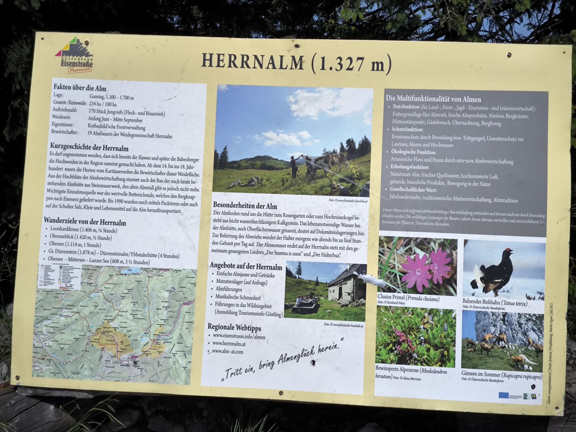 Da sich zu diesem Zeitpunkt bereits Wolken zusammenschoben und man auch Donner hören konnte, verließen wir die Hütte wieder und gingen rasch in Richtung Steinbachtal bei Göstling/Ybbs zu unseren Fahrzeugen. Dort kamen wir gegen 16.45 h an. Dem Regen konnten wir knapp entkommen.